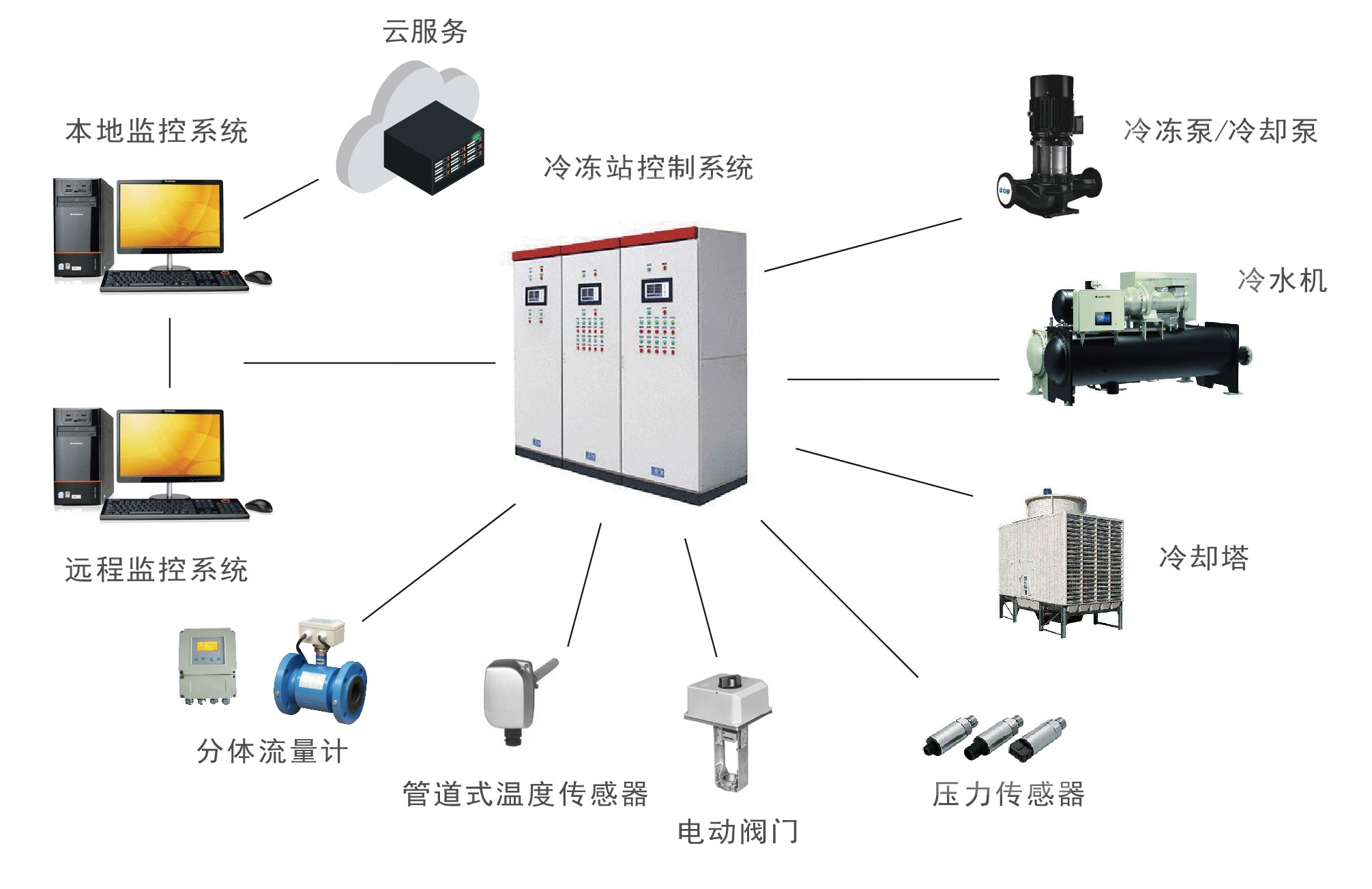 冷凍站控制系統(tǒng)主要應(yīng)用于大型建筑空調(diào)制冷系統(tǒng)、工藝制冷系統(tǒng)、工藝?yán)錈峤粨Q系統(tǒng)等集中式冷熱源系統(tǒng);可實(shí)現(xiàn)對(duì)冷水主機(jī)運(yùn)行臺(tái)數(shù)的自動(dòng)控制以及冷凍水泵、冷卻水泵、冷卻塔等設(shè)備的聯(lián)動(dòng)控制和聯(lián)鎖控制,達(dá)到冷凍站無(wú)人化值守的自動(dòng)化運(yùn)行及高效節(jié)能運(yùn)行的目標(biāo)。