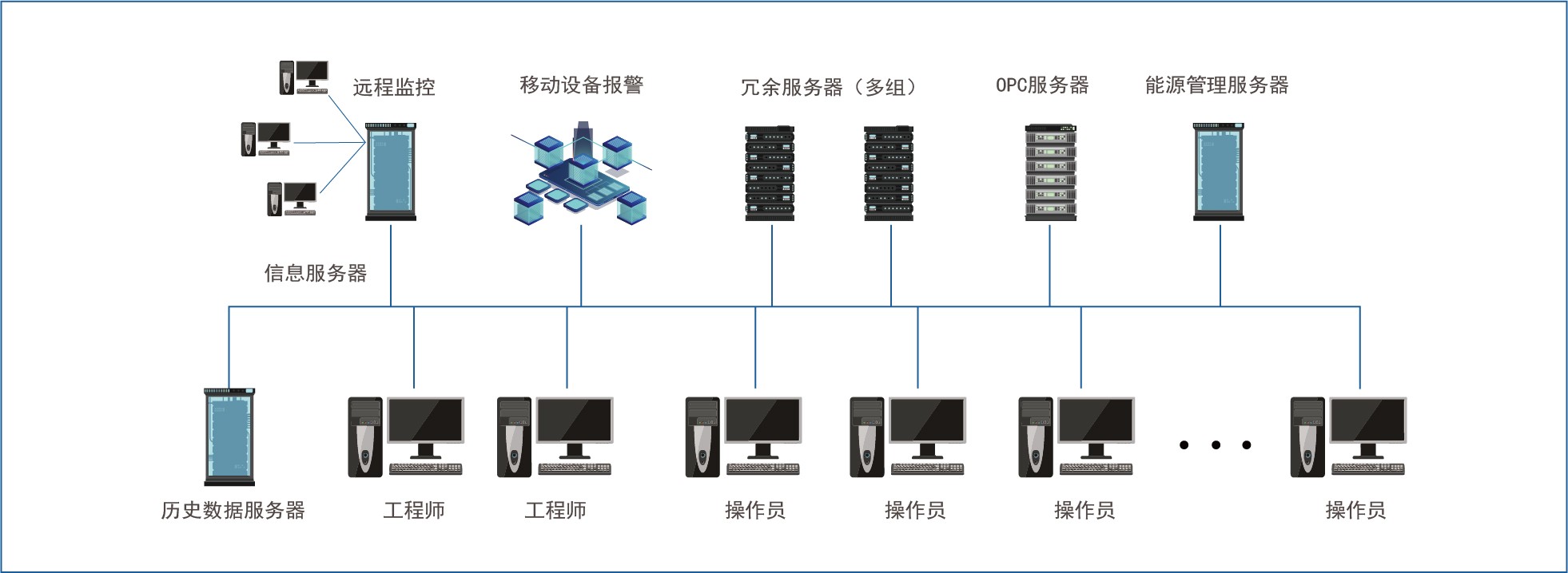 FMCS系統(tǒng),擁有冗余服務(wù)器,以確保收集的數(shù)據(jù)實時無丟失。歷史記錄和報警信息都有專用的服務(wù)器來保存數(shù)據(jù),以完善的架構(gòu)來保證每個環(huán)節(jié)的數(shù)據(jù)能可靠的處理,從而保證系統(tǒng)能穩(wěn)定可靠的運行。