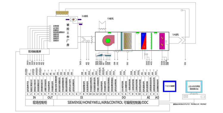 潔凈空調控制系統是利用自動控制裝置,保證特定空間內空氣環境參數達到預期值的控制系統。實現空調系統調節的自動化,可以提高調節質量,降低冷熱耗,節約能源,降低勞動強度,減少操作人員勞動生產率和技術管理水平。空調系統的自動化水平是空調先進技術的一個重要方面。隨著自動調節技術和電子技術的發展,潔凈空調控制系統的自動調節得到了廣泛的應用。